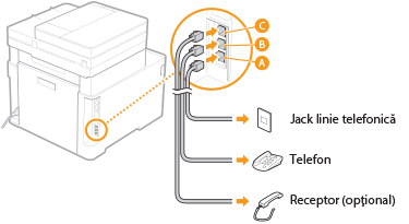 Conectaţi cablul telefonic inclus la conectorul pentru linia telefonică de pe aparat (
