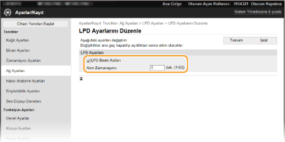 LPD aracılığıyla yazdırmak için onay kutusunu seçin. LPD yazdırma kullanılmadığında onay kutusunu temizleyin. [RAW Baskı Kullan]