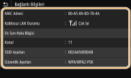 Geçerli ağ ayarlarının listesini yazdırabilirsiniz. Kullanıcı Veri Listesi/Sistem Yöneticisi Veri Listesi