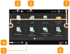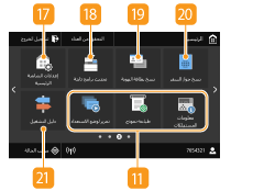 في لوحة التشغيل. استخدم هذه الشاشة لتحديد الإعدادات وتسجيل الوظائف.