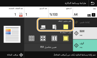 بالنسبة لملف بتنسيق PDF، يمكنك طباعة ٩ أو ١٦ صفحة من بيانات الصور على وجه واحد من الورقة باستخدام <N على 1> أسفل <تعيين تفاصيل PDF>.