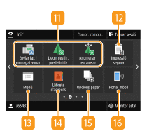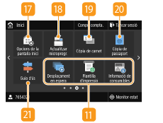 Mostra les "Opcions preferides" desades per a la còpia, l'enviament de fax i la lectura. Addició de botons a la pantalla Inici