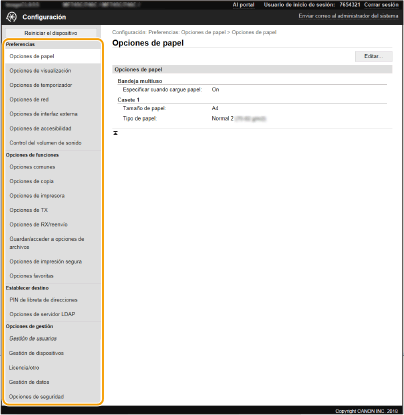 Algunas de las opciones solo pueden cambiarse si ha iniciado sesión en el Modo de administrador del sistema. Algunas opciones podrían requerir unas operaciones distintas a las descritas en este procedimiento. |