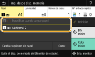Seleccione <Imp. desde disp. de mem.> en la pantalla Inicio.