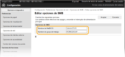 El nombre del grupo de trabajo es un nombre para agrupar varios ordenadores de forma que las funciones de red básicas, como el uso compartido de archivos, estén disponibles en una red Windows. Especifique el nombre del grupo de trabajo para identificar el grupo al que pertenece el equipo.