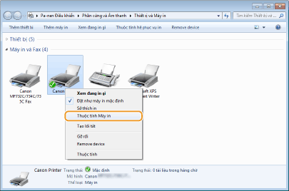 Nhấp chuột phải vào biểu tượng máy in của máy này, và nhấp vào [Printer properties] hoặc [Properties].