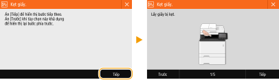 Thông báo được hiển thị trên màn hình trong các tình huống như khi hết giấy hoặc khi tuổi thọ của hộp mực đã tới hạn. Để biết thêm thông tin, vui lòng xem "Xử lý Sự cố (FAQ)" trên trang web hướng dẫn sử dụng trực tuyến.