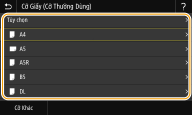 2 | Chỉ định chiều dài của cạnh <X> và cạnh <Y>. Chọn <X> hoặc <Y> , và nhập độ dài của mỗi chiều, bằng cách sử dụng các phím số. ![]() ![]() Nếu bạn đăng ký cỡ giấy bạn thường sử dụng gán cho các nút <S1> đến <S3>, bạn có thể hiện các cỡ giấy lên chỉ bằng một lần chạm. Đăng ký Cỡ Giấy Tùy Chỉnh |