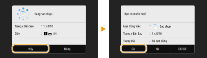 Chọn <Hủy> trên Màn Hình Được Hiển Thị Trong Khi Sao Chụp