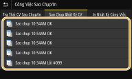 Khi <Hiển Thị Nhật Ký Công Việc> được cài đặt thành <Tắt>, bạn không thể kiểm tra nhật ký công việc sao chụp. <Hiển Thị Nhật Ký Công Việc> |