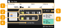 Khi bạn chọn <Sao chụp> trong màn hình Home, màn hình Các Tính Năng Cơ Bản cho chức năng Sao Chụp xuất hiện.