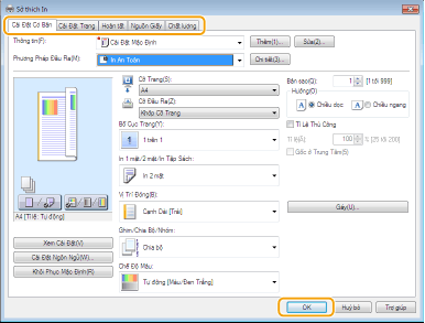 Chỉ định cài đặt in khi cần thiết, và nhấp vào [OK].