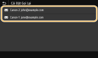 ![]() | Bạn có thể chọn điểm đích từ trong số các điểm đích trước đây. Khi bạn chỉ định một điểm đích đã từng sử dụng trước đó, máy cũng sẽ thiết lập cùng cài đặt ví dụ như mật độ bạn đã sử dụng trong lần cuối bạn gửi tài liệu đến điểm đích đó. |