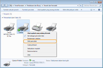 Klik kanan ikon pemacu pencetak untuk mesin ini dan klik [Printer properties] atau [Properties].