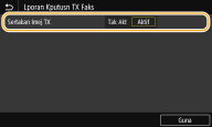 Pilih <Aktif> untuk mencetak laporan secara automatik selepas 40 transmisi, atau <Tak Akt> jika anda tidak mahu mencetak laporan secara automatik.