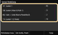 Anda boleh menyemak jumlah berasingan bagi jumlah halaman yang digunakan untuk cetakan warna dan cetakan hitam dan putih. Jumlah ini termasuk faks, laporan, dan senarai, di samping salinan dan cetakan data dari komputer.