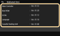 Menyemak versi perisian tegarAnda boleh menyemak versi perisian tegar dari panel operasi mesin. Setelah selesai operasi kemas kini perisian tegar, pastikan maklumat itu dilakukan dengan betul. Menyemak versi Perisian Tegar |