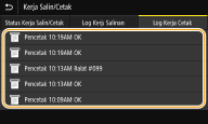 Apabila <Papar Log Kerja> ditetapkan kepada <Tak Aktif>, anda tidak boleh menyemak log cetakan. <Papar Log Kerja> |
