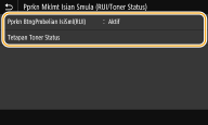 <Pprkn BtngPmbelian IsiSml(RUI)> <Tak Aktif> <Aktif> ![]() <Tetapan Toner Status> <Tak Aktif> <Aktif> ![]() <Butang Ppr Pembelian IsianSml> <Tak Aktif> <Aktif> ![]() |