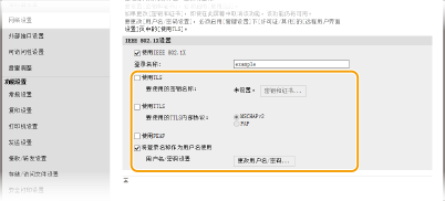 选中 [使用IEEE 802.1X] 复选框,然后在 [登录名称] 文本框内输入登录名。