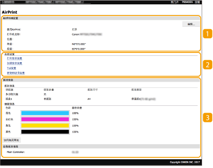 以管理员权限登录时,AirPrint 专用页面显示如下。