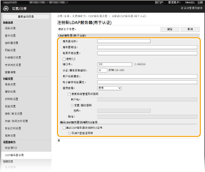 如果限制了传真和扫描功能的使用,请注册用于认证的服务器。