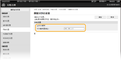 如果从 DHCP 服务器获取 WINS 服务器的 IP 地址,则所获取的 IP 地址优先于在 [WINS服务器地址] 文本框中输入的 IP 地址。