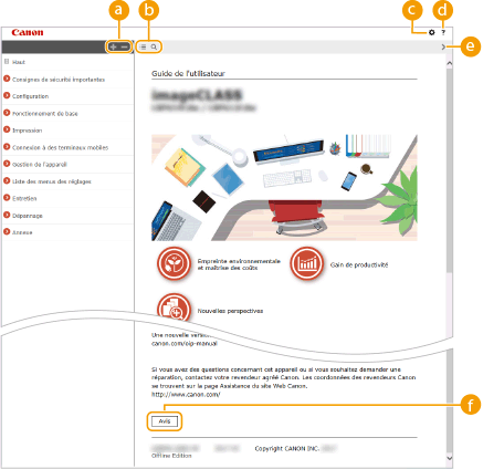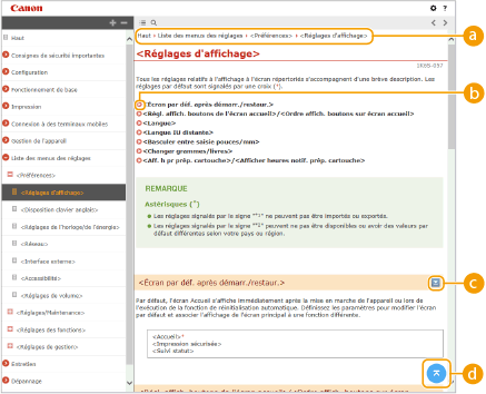 Cliquez ici pour configurer l'affichage du Guide de l'utilisateur, notamment la taille des caractères ou la structure des écrans.