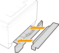 Lorsque la rallonge de la cassette à papier est sortie, son côté avant dépasse de l'appareil. Placez le capot anti-poussière sur la partie dégagée de la cassette à papier.