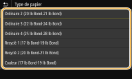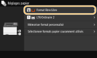 Si vous devez changer fréquemment de papier, sélectionnez <Libre>. Cette option permet de réduire le nombre d'étapes nécessaires pour changer le réglage pour le papier. Notez cependant qu'avec ce réglage l'appareil exécute l'impression même si le type de papier sélectionné dans le pilote d'imprimante diffère de celui chargé dans l'appareil.