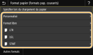 Si le format du papier chargé n'apparaît pas, sélectionnez <Autres formats>.