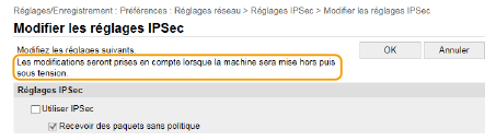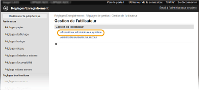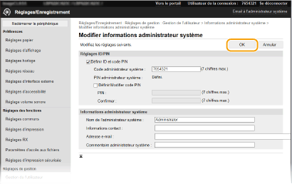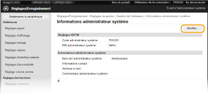 Vous ne pouvez modifier certains réglages que si vous êtes connecté en tant qu'administrateur système.