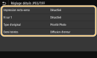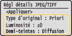 Vous pouvez changer les réglages d'impression pour les images JPEG et TIFF.