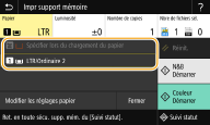 Sélectionnez <Impr. support mém.> dans l'écran Accueil.