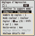 Pour faire d'autres réglages d'impression, sélectionnez <Fermer>. |