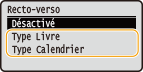 <Impression recto-verso> Vous pouvez effectuer des impressions recto verso. Sélectionnez la position de la reliure. |