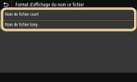 Sélectionnez <Nom de fichier court> ou <Nom de fichier long>