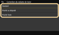 Lorsque <Économie de toner> est réglé sur <Activé>, vous ne pouvez pas régler cette option.