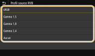 Le réglage de cette option n'est pas disponible si <Profil source RVB> est réglé sur <Aucun>.