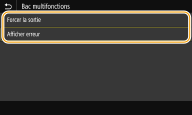 <Bac multifonctions> <Forcer la sortie> <Afficher erreur>  <Cassette 1> <Forcer la sortie>  <Afficher erreur> <Cassette 2>*1 <Forcer la sortie>  <Afficher erreur> |