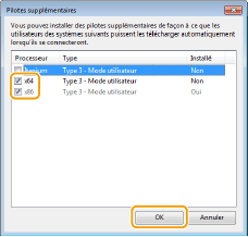 Cette opération est indispensable pour installer les pilotes sur d'autres ordinateurs d'architecture différente via le serveur d'impression.