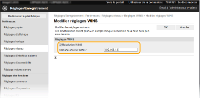 Cochez la case [Résolution WINS] et configurez les réglages requis.