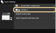 If you frequently need to change the paper to be loaded, set to <Free>; this will reduce the number of steps required to change the setting each time. However, take note that this setting lets the machine perform printing even if there is mismatch between the paper type setting in the printer driver and the paper type actually loaded in the machine.