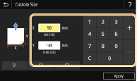 2 | Specify the length of the <X> side and <Y> side. Select <X> or <Y>, and enter the length of each side using the numeric keys. |