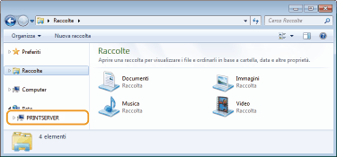 Selezionare il server della stampante in [Rete] o [Risorse di rete].
