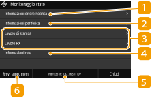 È possibile specificare se visualizzare l'indirizzo IP nella schermata <Monitoraggio stato> impostando <Visualizza indirizzo IP>.