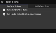 Visualizza lo stato corrente della voce selezionata. La schermata <Lavoro di stampa> viene illustrata di seguito come esempio.