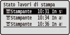 Visualizza lo stato corrente della voce selezionata. La schermata <Stato lavori di stampa> viene illustrata di seguito come esempio.