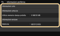 <Utilizzo memoria stampa protetta>Visualizza la quantità di memoria in uso per l'archiviazione dei dati dei documenti protetti.