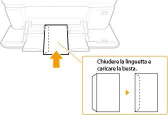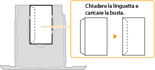 In questa sezione viene descritto come caricare le buste con l'orientamento preferito, oltre alle procedure necessarie da eseguire prima di caricare le buste. Per una descrizione della procedura generale di caricamento buste nel cassetto della carta o nel vassoio multiuso, vedere Caricamento della carta nel cassetto della carta o Caricamento della carta nel vassoio multiuso. |